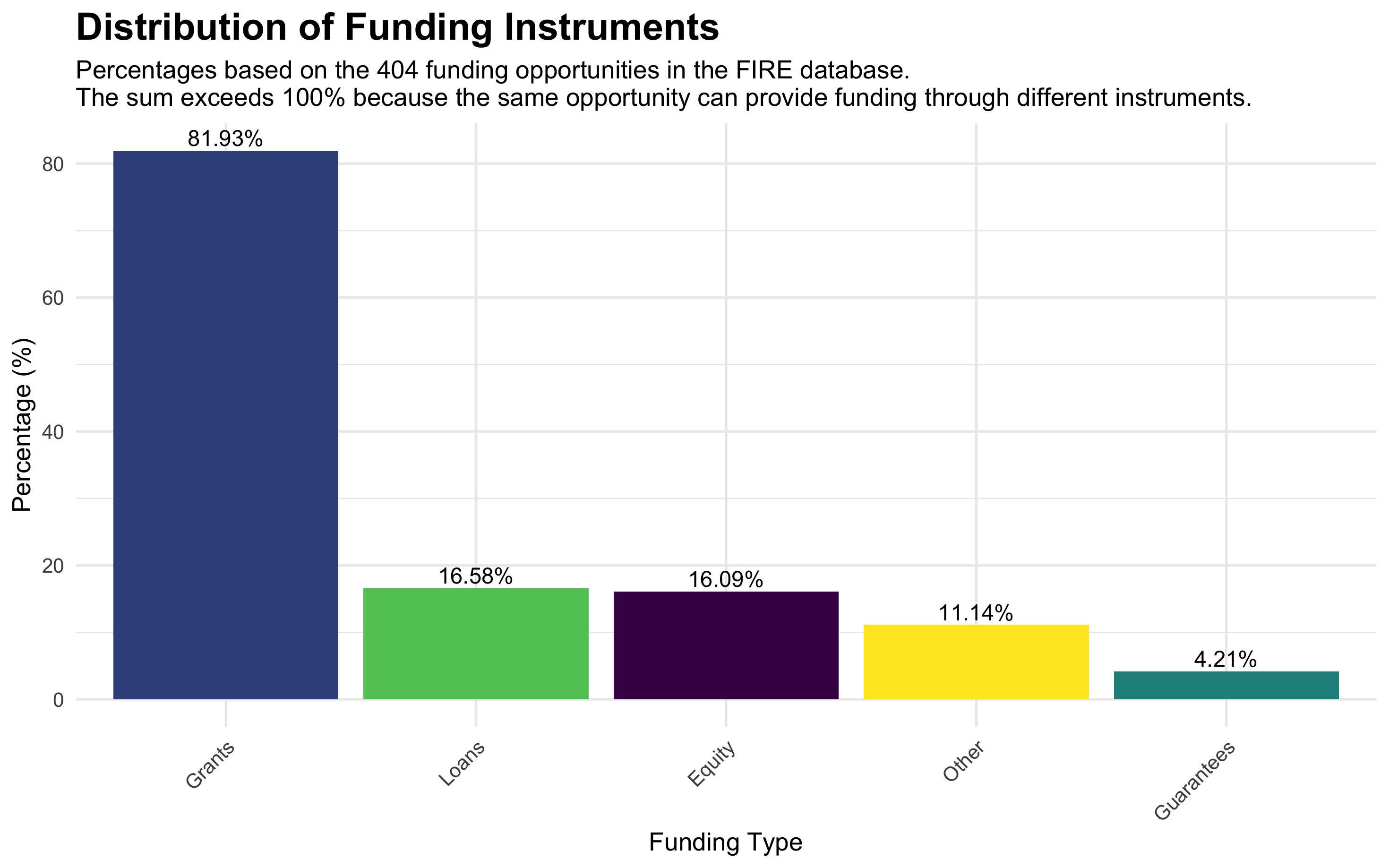The majority of funding opportunities (81.93%) offer grants, which typically consist of non-refundable funds. The next most common funding instruments, loans (debt to be repaid with interest) and equity (investment in exchange for shared ownership), are offered by 16.58% and 16.09% of the opportunities, considerably lower than grants. It is interesting to note that only 4.21% of the opportunities provide guarantees, which usually have a catalytic impact by helping project developers secure funding from other sources.