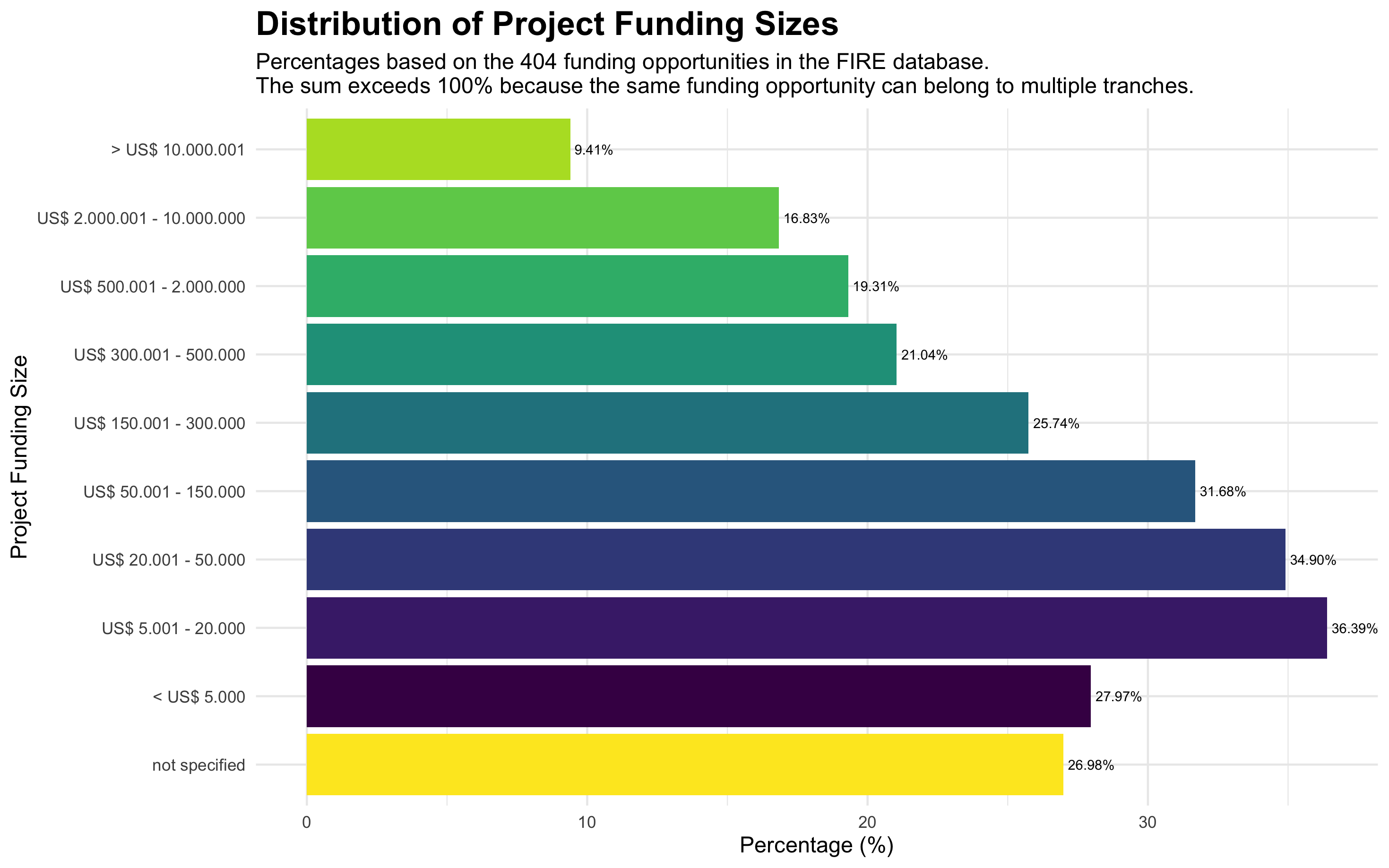 52% of the funding opportunities target projects with needs of up to USD 150,000